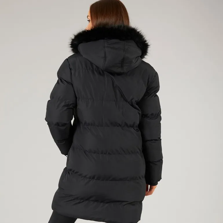 Closure London Dame Lang Lang Faux Fur Parka med Hætte Sort