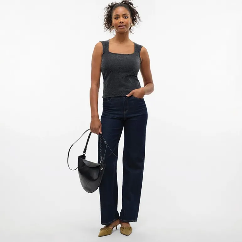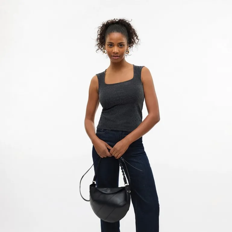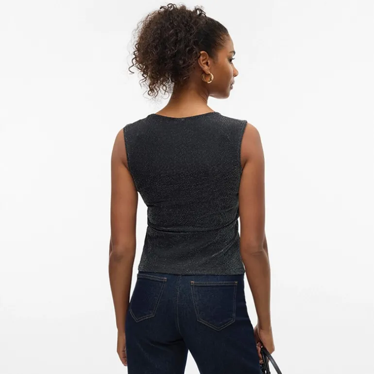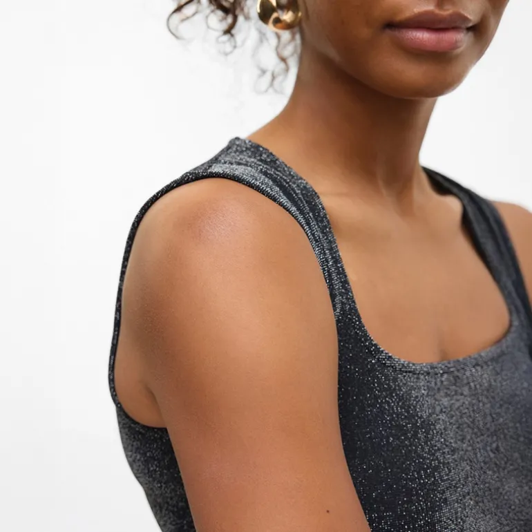 Vero Moda Dame Million Lurex Firkantet Hals Top Sort W Sølv