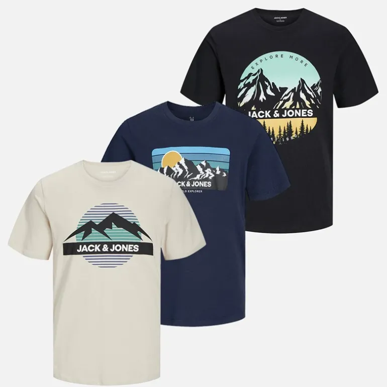JACK & JONES Drenge Peak Rund Hals Tre Pakke T-shirts Sort / Måne Stråle / Marineblå