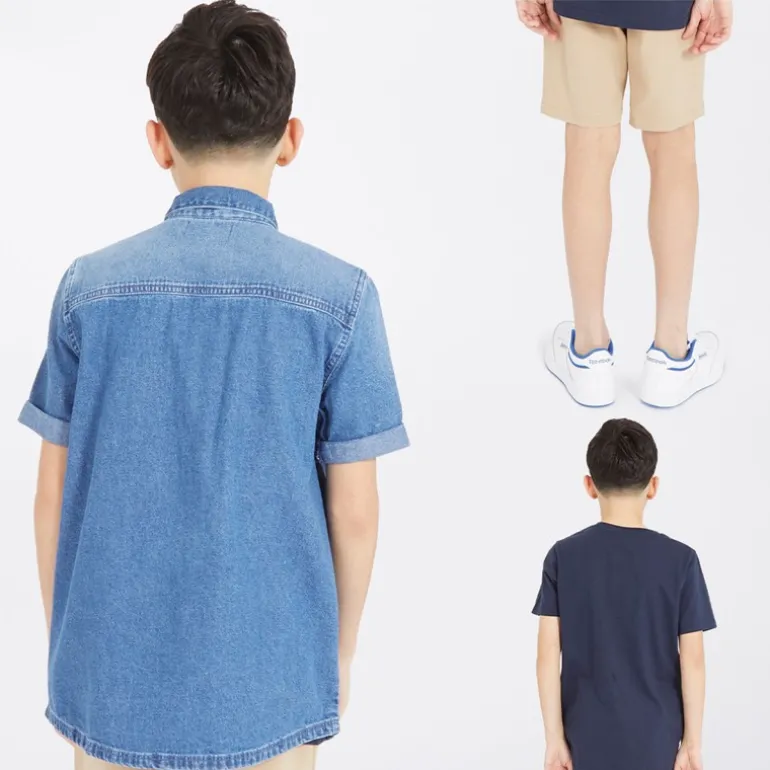 Bench Drenge Tobama Skjorte T-shirt Og Chino Shorts Sæt Mid Wash/Navy/Stone