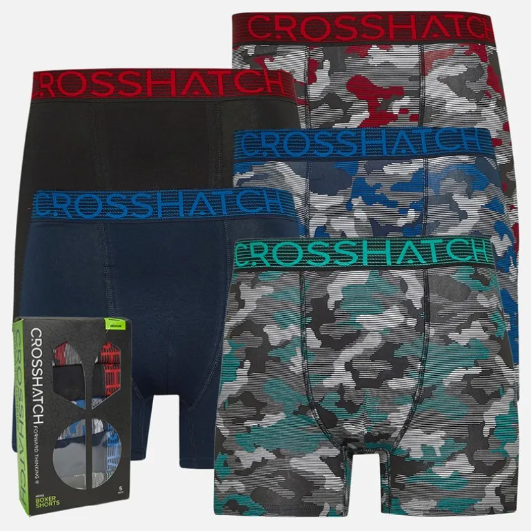 Crosshatch Herre Levex Fem Pak Boxer Shorts Assorteret