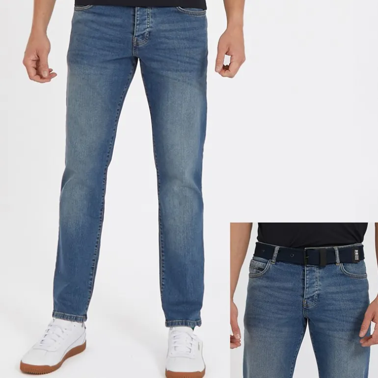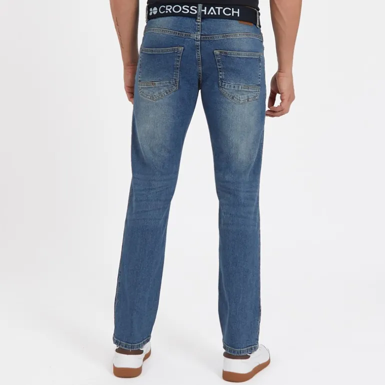 Crosshatch Herre Princed Jeans med lige pasform Stenvasket