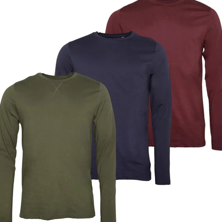 Brave Soul Herre Prøvepakke Tre Langærmede Trøjer Blå/Khaki/Burgunder