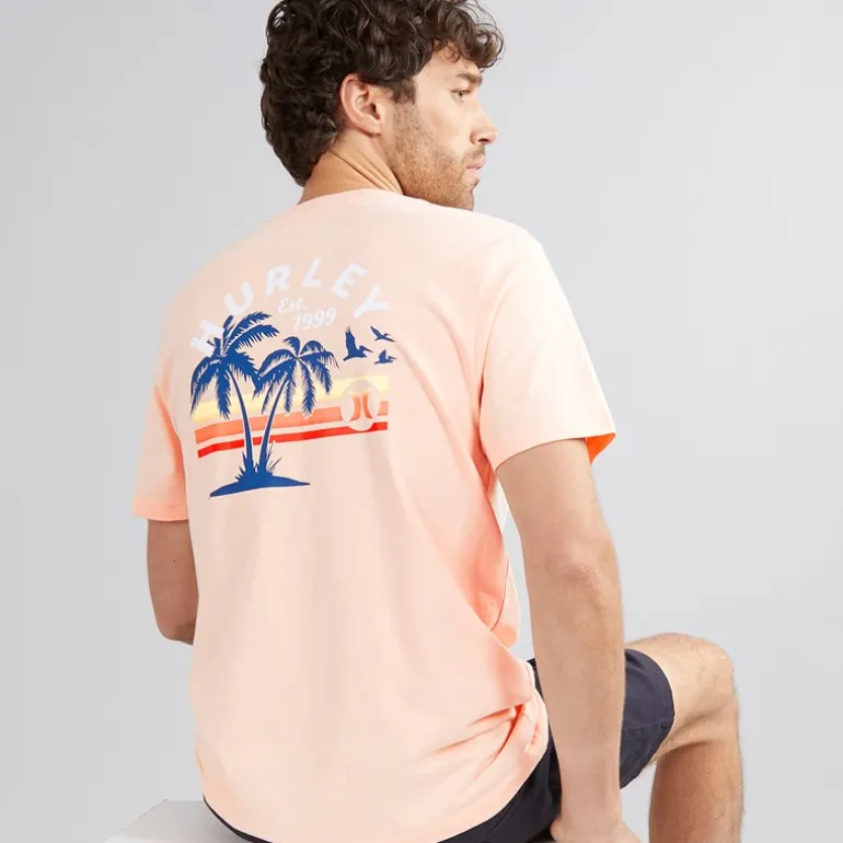 Hurley Herre Stribet Sunrise Grafik T-Shirt Pink