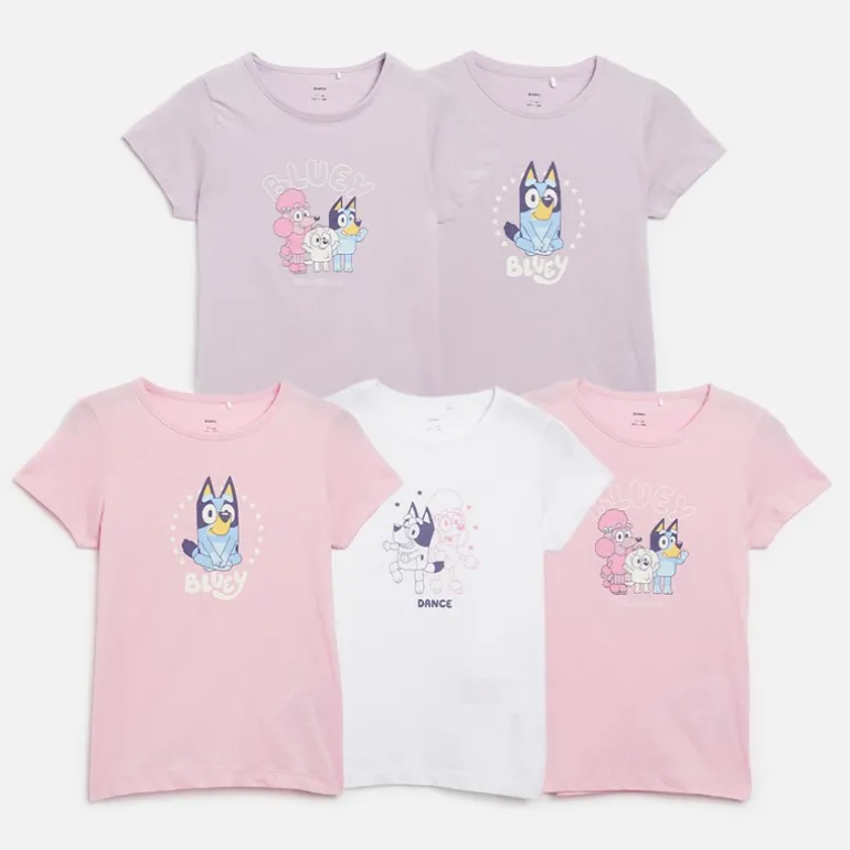 Bluey Piger Kuru Fem Pak T-Shirts Lys Hvid
