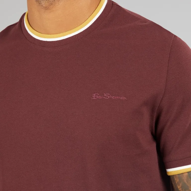 Ben Sherman Herre Pique Ringer T-Shirt Vin