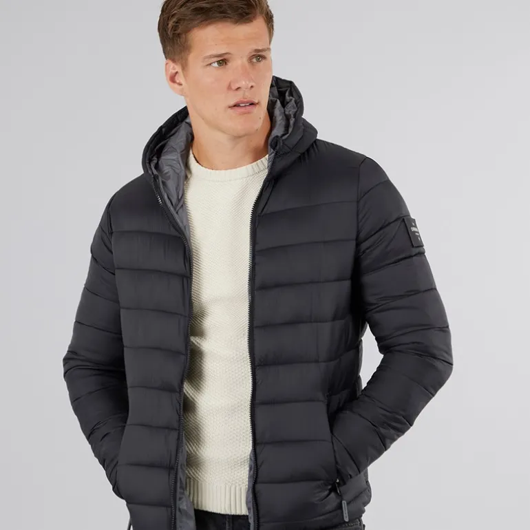 Crosshatch Herre Puff jakke med rynker Sort