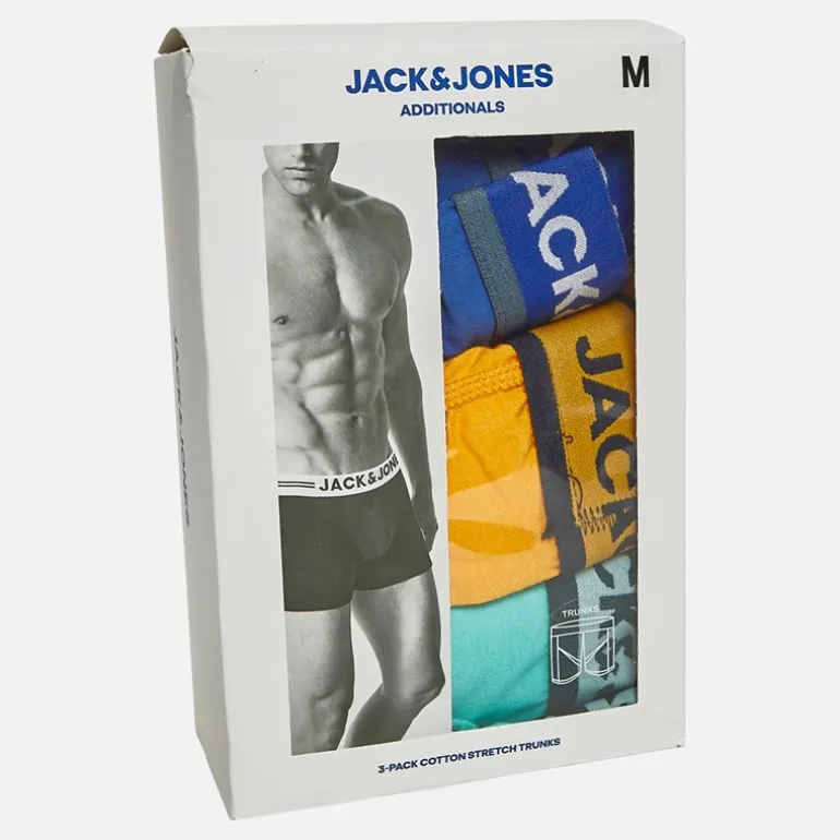 JACK & JONES Herre Rex Ensfarvet Tre Pak Boxer Trusser Dazzling Blue/Pool Blue/Iceland Poppy