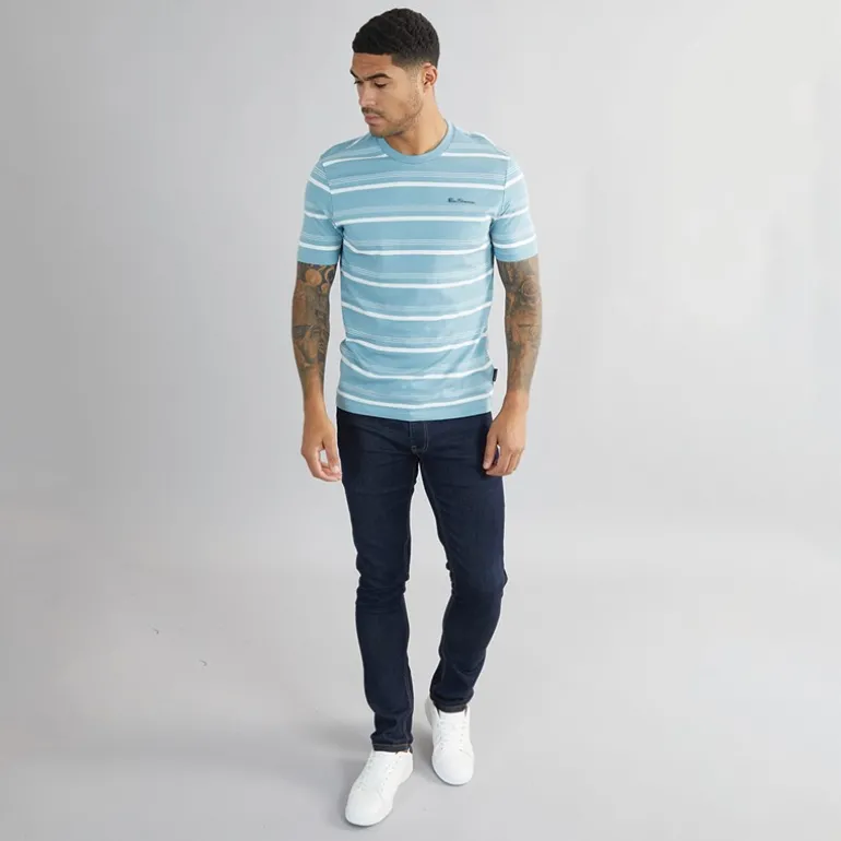 Ben Sherman Herre T-shirt med tynde striber Petrol