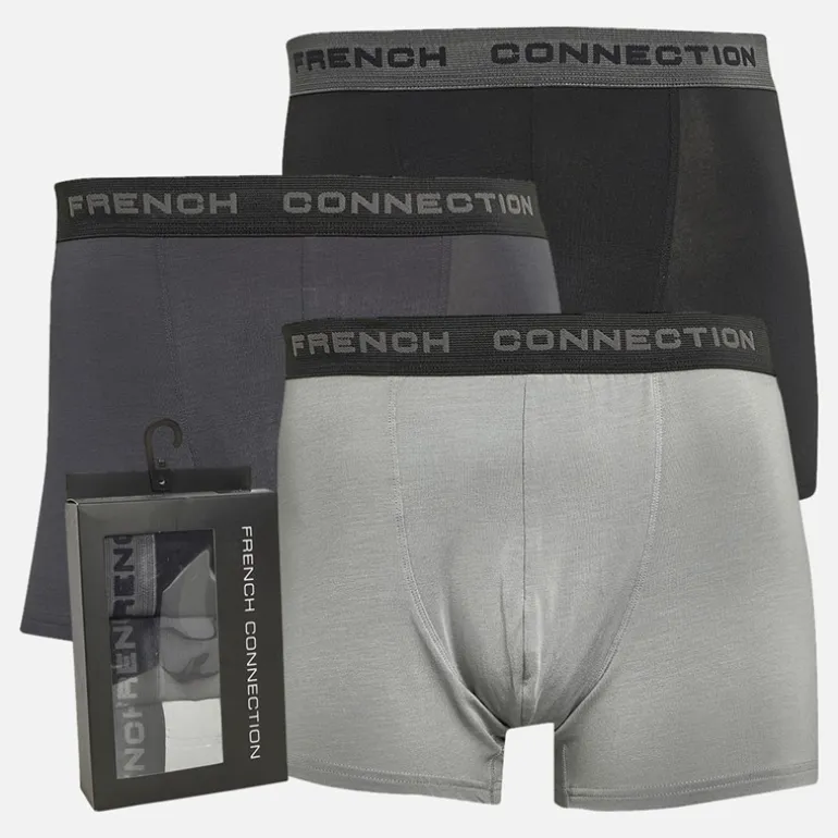 French Connection Herre Tre Pak Modal Luksus Supersoft Boxer Trunks Fc32 Black/Charcoal Melange/Light Grey Melange